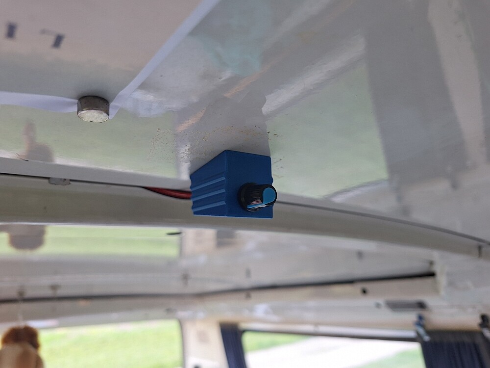 Langsam stelle ich alles auf XT30 und XT60 Stecker um, hier ein provisorischer Verteiler. Daneben eine Halterung mit Schalter für einen Innenraumlüfter (davon habe ich zwei). Die halten die Temperatur tief und vertreiben Fliegen und Mücken.