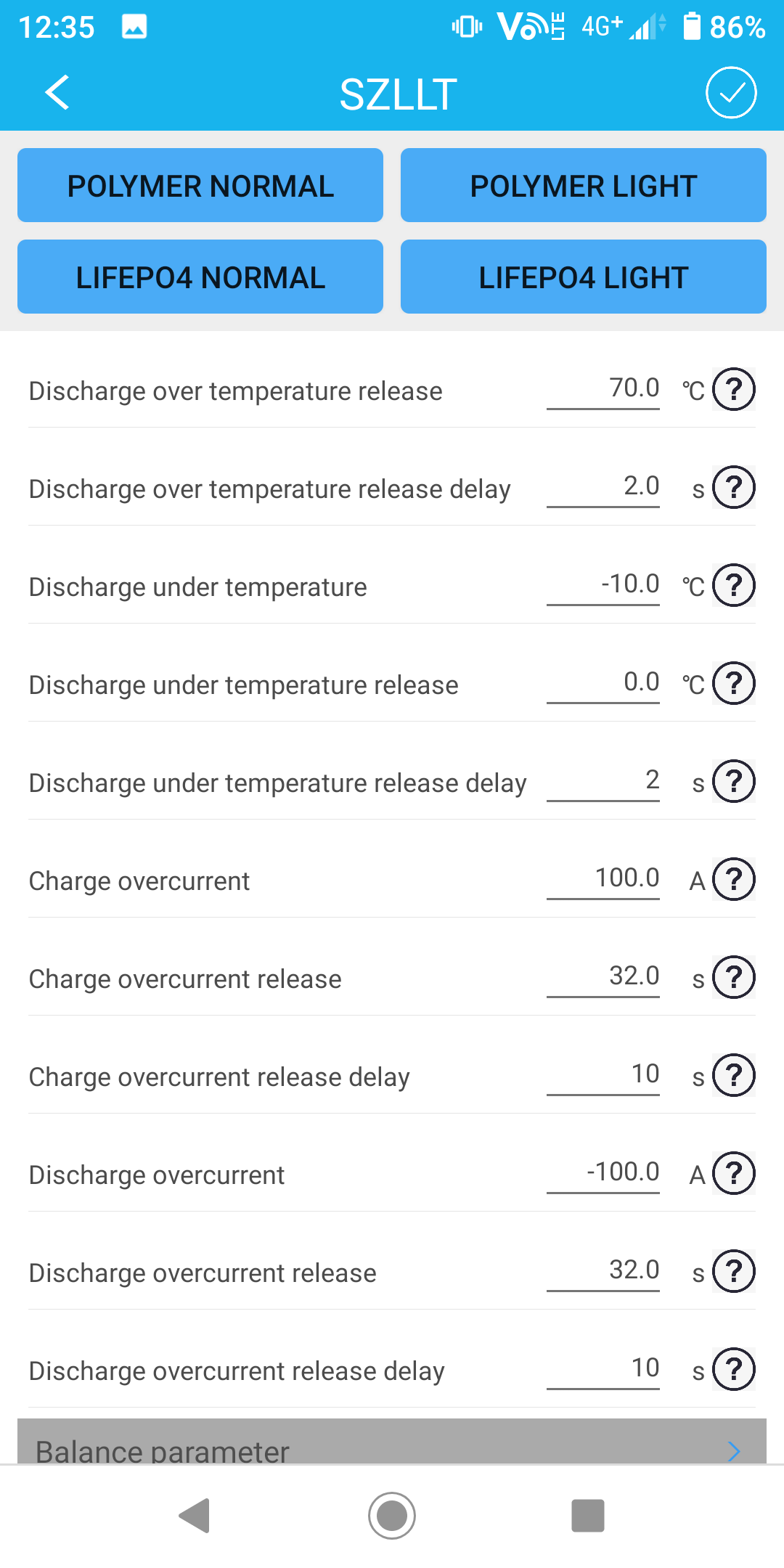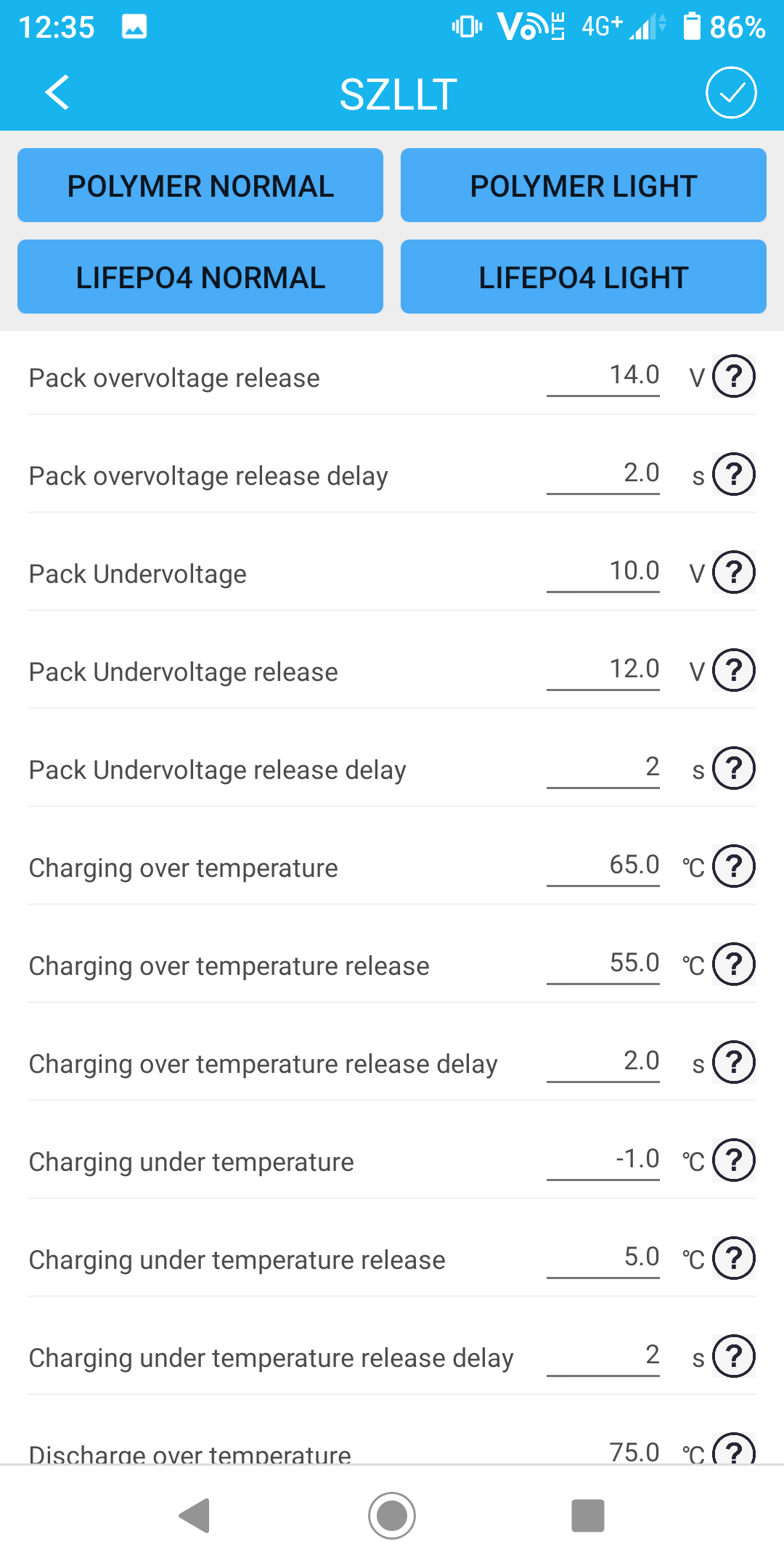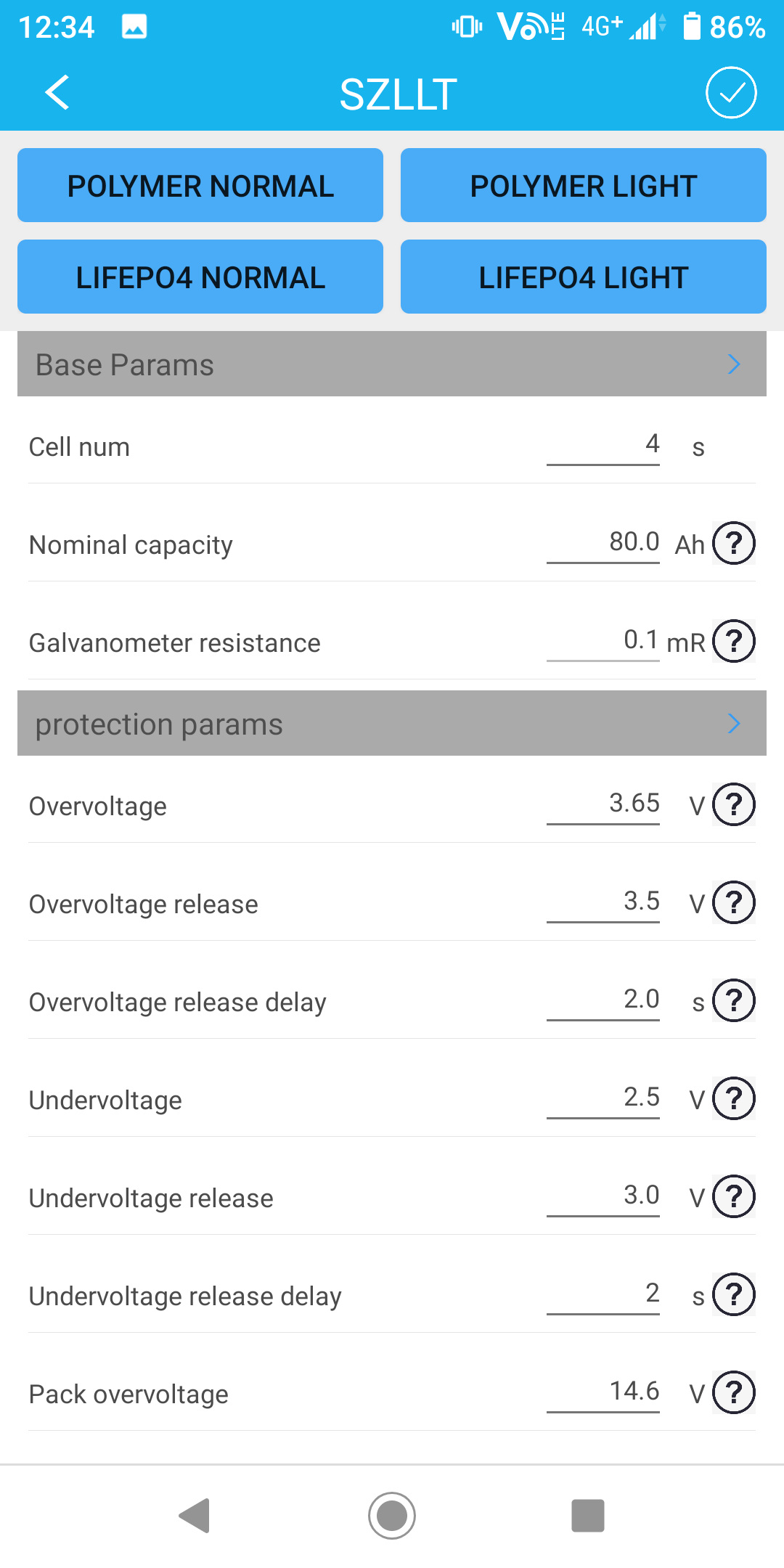 Habt ihr eigentlich alles das Balancing auf always on? D.h , dass es auch balancen tut, wenn nicht geladen wird. Würde ich unbedingt machen. Die Schwelle würde ich auf um die 3.4V setzen.