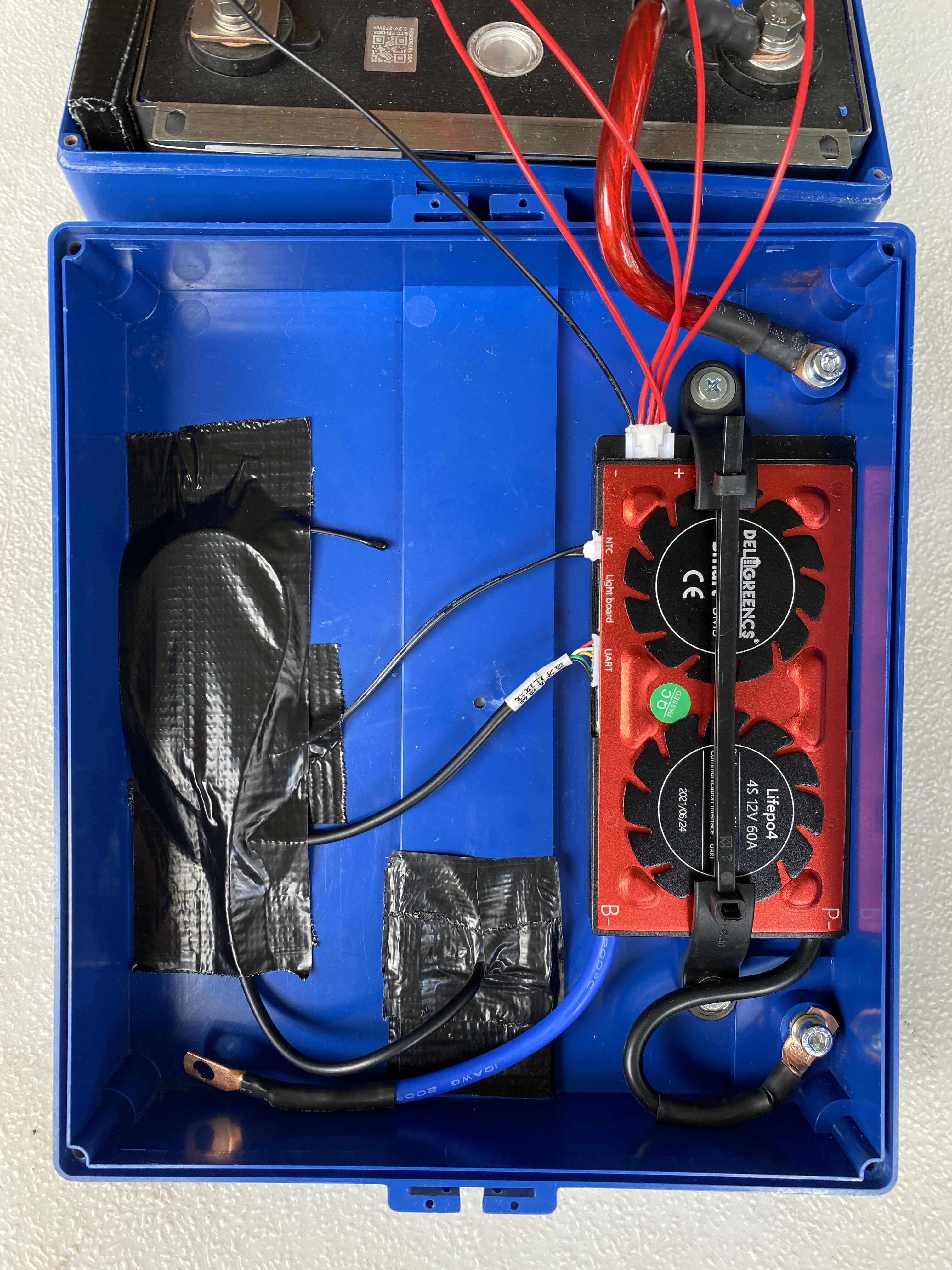 Damit ist es wasserdicht und ich kann sie hinten im Motorenraum von meinem T2B verbauen. Als BMS habe ich ein DeliGreen (Daly) genommen, mit Bluetooth. Ein Daly habe ich auch schon bei Maribus in einem Thread gesehen und auch mein letztes BMS war ein Daly.