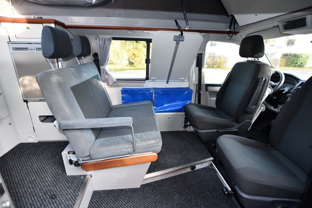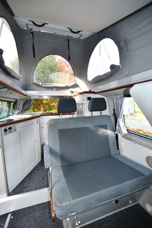 70’000km VW T6 4.9 (mit Heckküche) 4Motion mit SAC 195 Aufstelldach (nach hinten öffnend) mit 4 Schlafplätzen, zugelassen für 4 Personen, Mojawe Beige Metallic mit weisser Dachschale (neu inklusive neuem Zeltbalg)