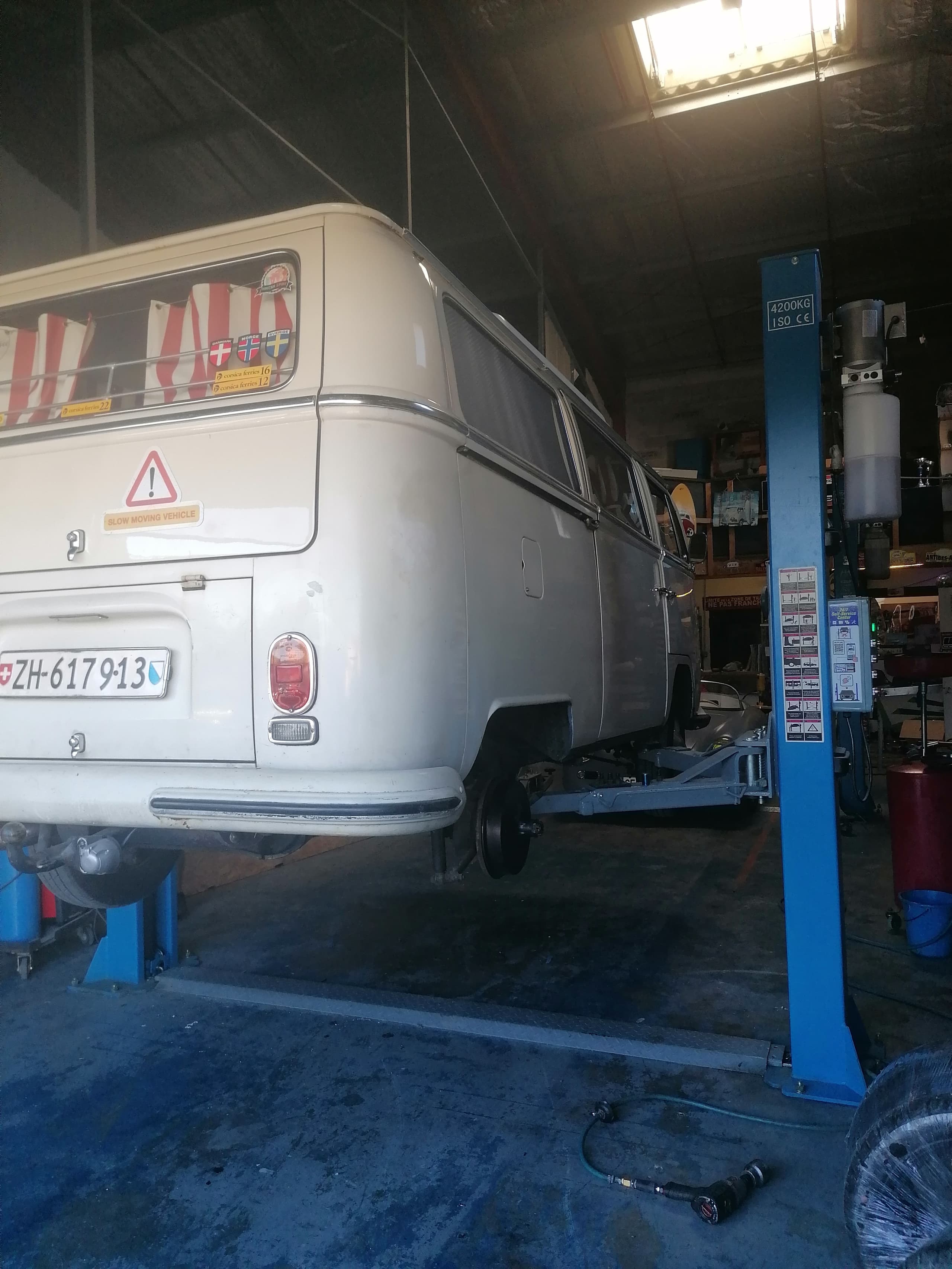 Es gab schon ein paar Verständigungsproblme, abe er hat sich extrem Mühe gegeben und uns somit die Ferien gerettet und eine Weiterfahrt ermöglicht. Nach Rücksprache per Telefon mit dem Bus Spezialisten in der Schweiz war diese Aktion mit dem Umbau der T1 Bremstrommel unbedenklich.