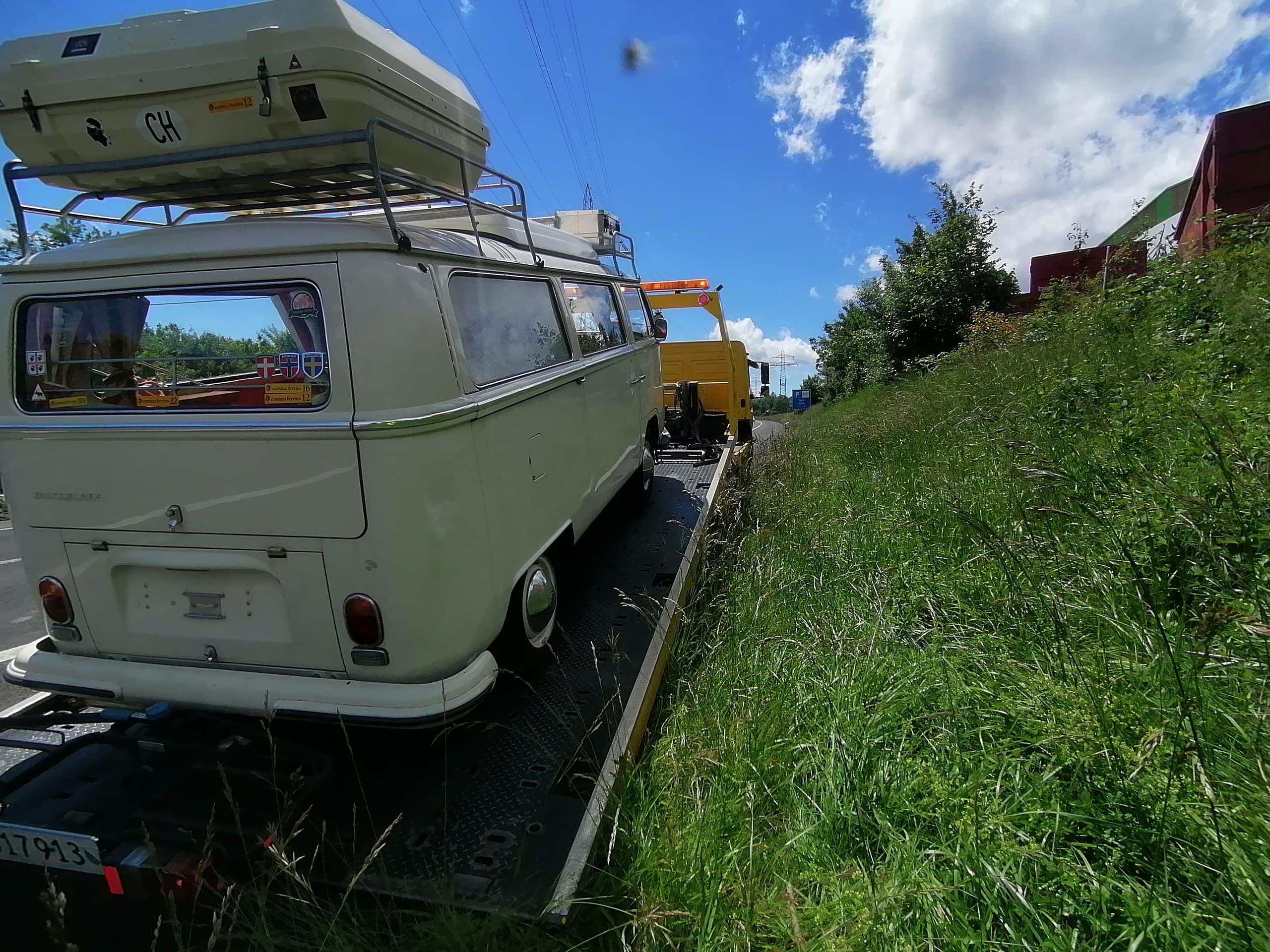 Während dem warten kam ein T2a-Fahrer (auch mit einem beigen T2a) oben zum Haag, der die Autobahn abtrennte und fragte was los sei. Es sah mich von der Autobahnbrücke als er links herunter auf die Autobahn sah und per Zufall mich entdeckte. Wir besprachen Problem und Lösungen und er meinte ich solle den Bus zu sich bringen, ca. 5 min entfernt. Da können wir dann schauen.