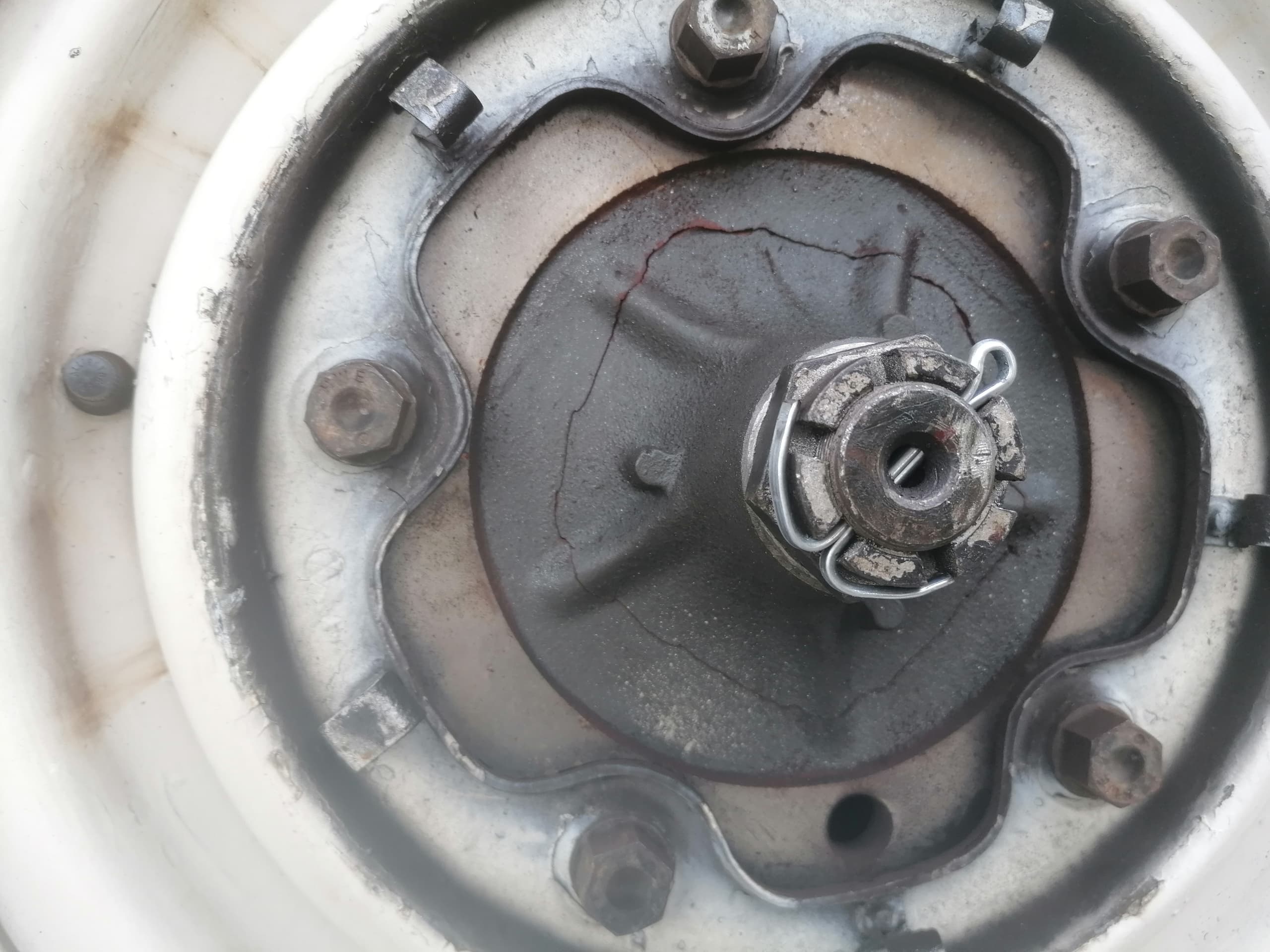 So wurde nach dem VW Treffen am Sonntag abend die Bremstrommel gelöst und die “neue” draufgesteckt. Aber leider passte das nicht. Es war eine T1 Bremstrommel. Die ist aussen beim Rand etwas zu gross was mit einem Winkelschleifer abgetragen werden konnte. Aber auch die Einstecklänge ist beim T1 10mm länger als beim T2a. Dies kann nur mit einem Drehbank gemacht werden, hatte der Mech aber nicht.
