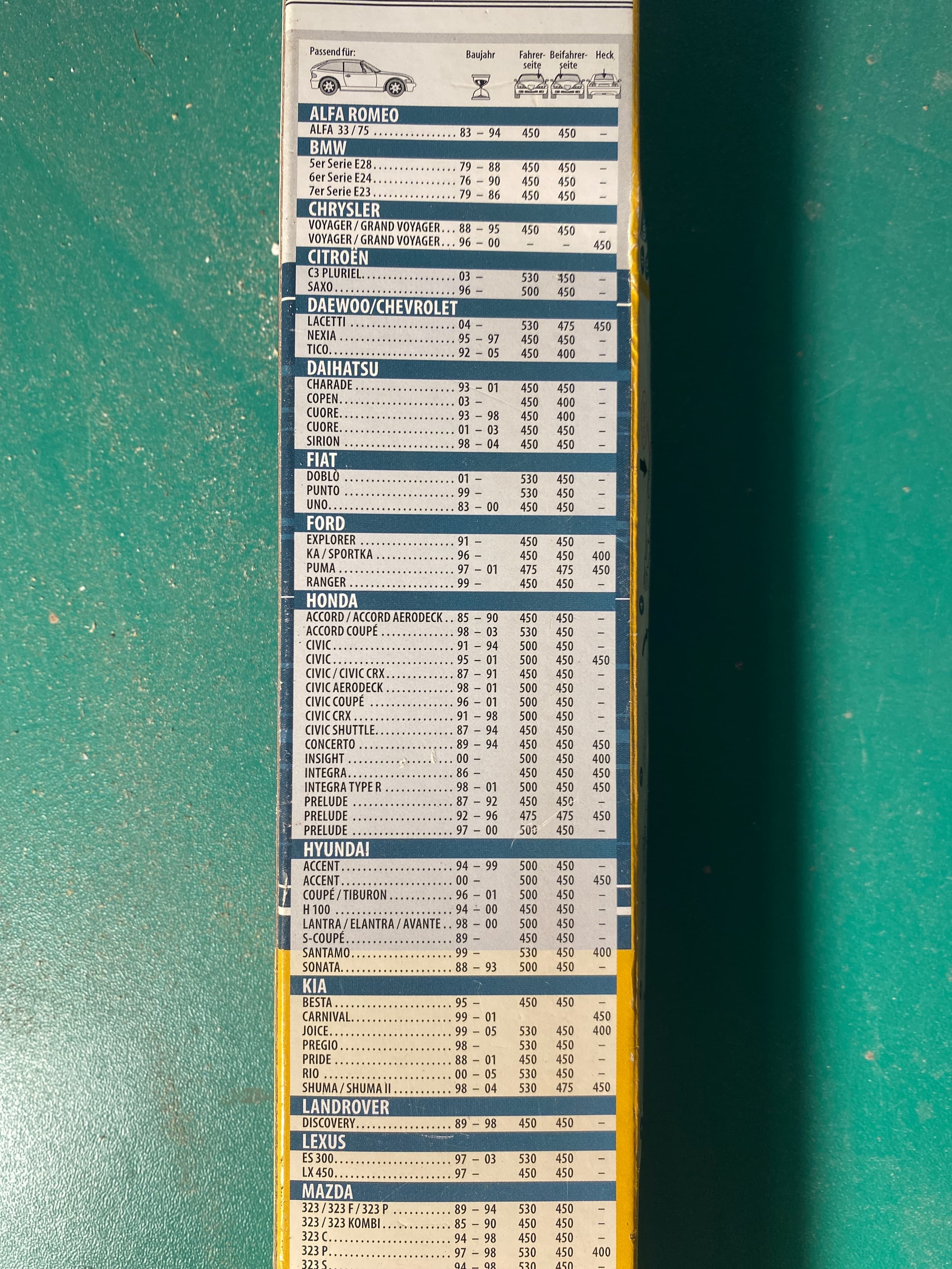 Kann jemand dieses Sett Scheibenwischer gebrauchen? Passen angeblich auf diverse Modelle von Alfa Romeo bis VW