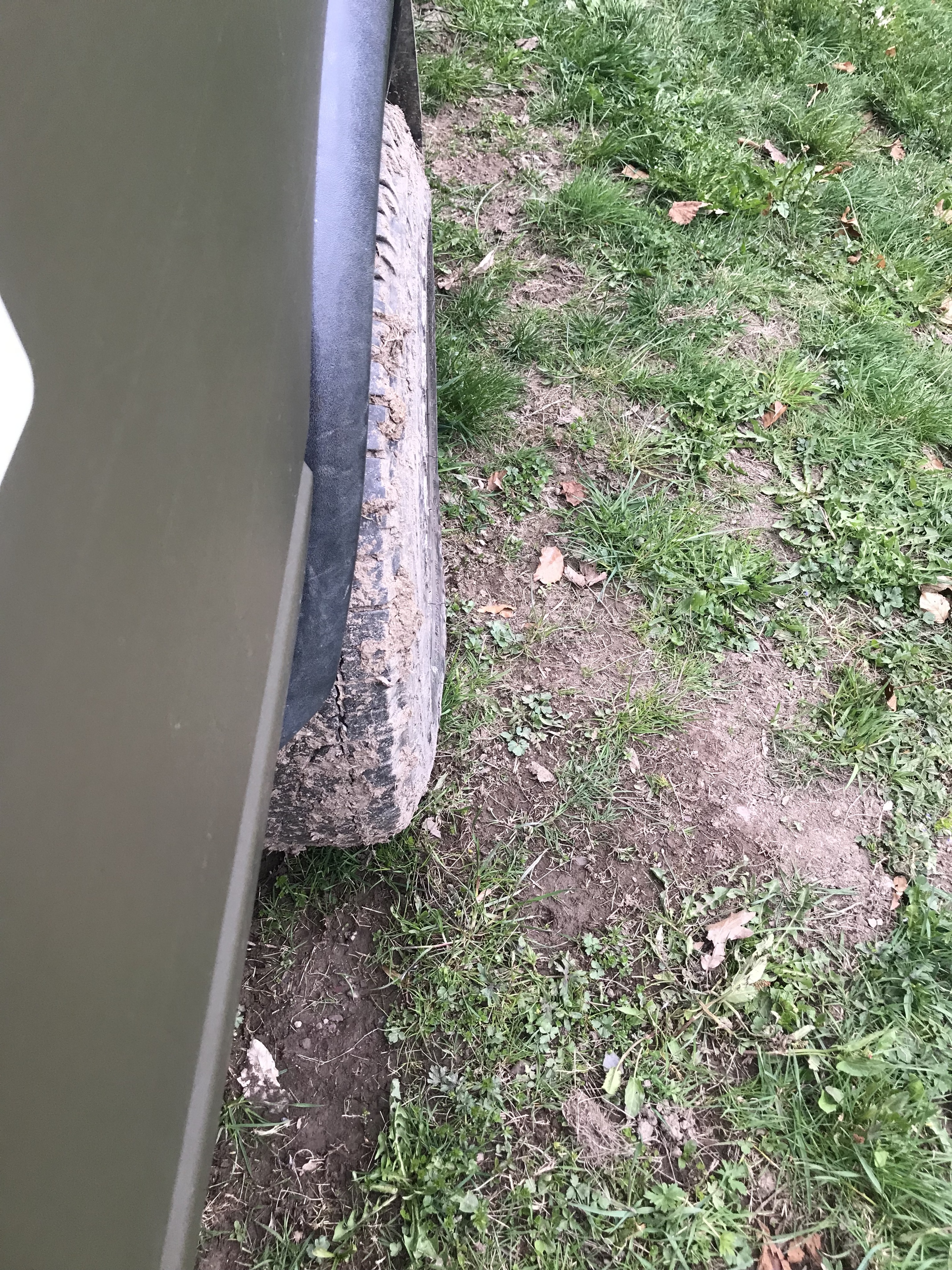 Ist das abgenommen, weil die Reifenlauffläche ja über die Kotflügel hinaussteht? Oder sieht das nur so aus?