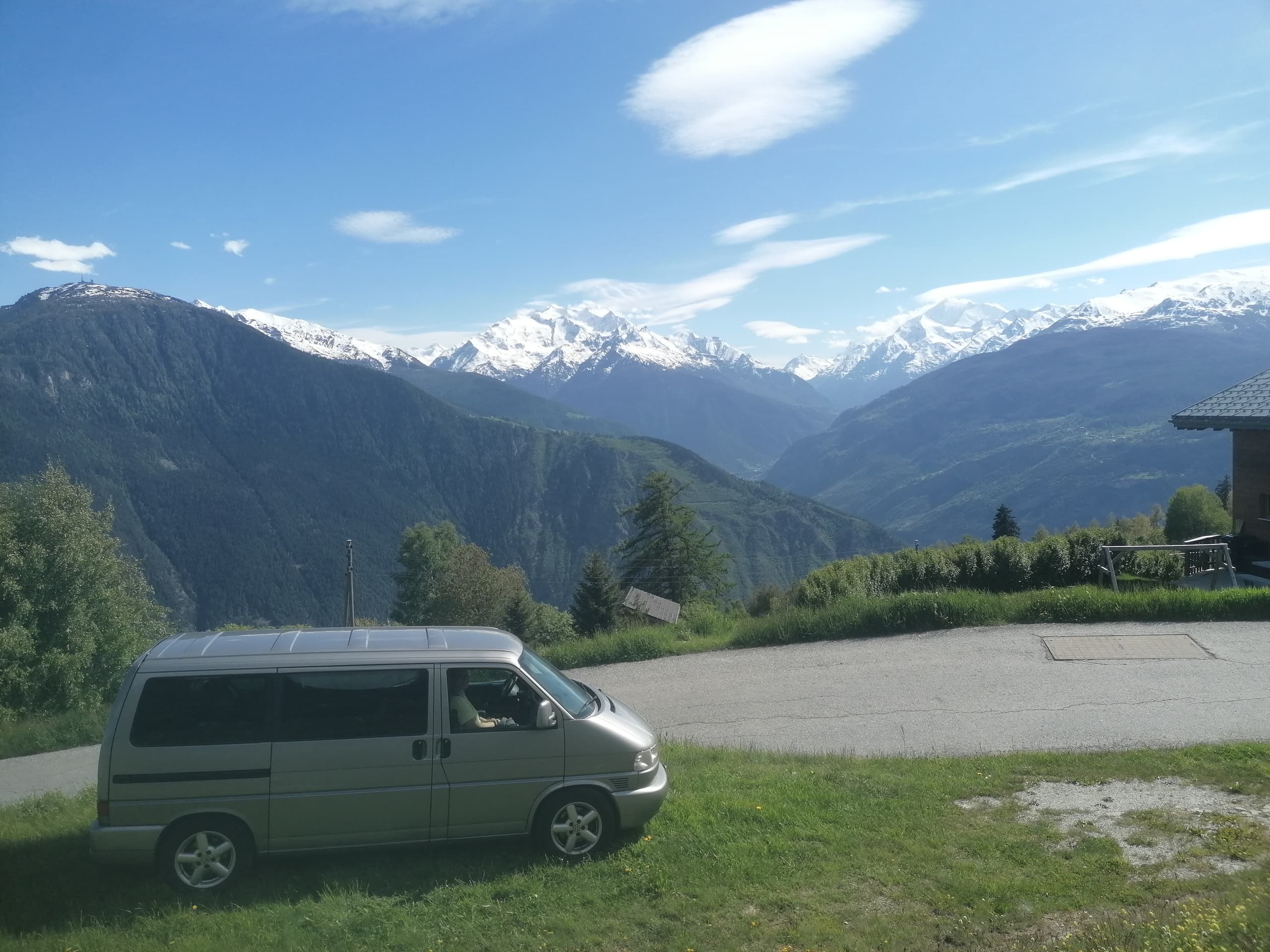 Es gibt aber Positives: Er fährt immer noch und befördert 2 Erwachsene, 3 Kinder und 1 Hund fleissig durch Europa. Geschlafen wird im Bus und im Dachzelt.