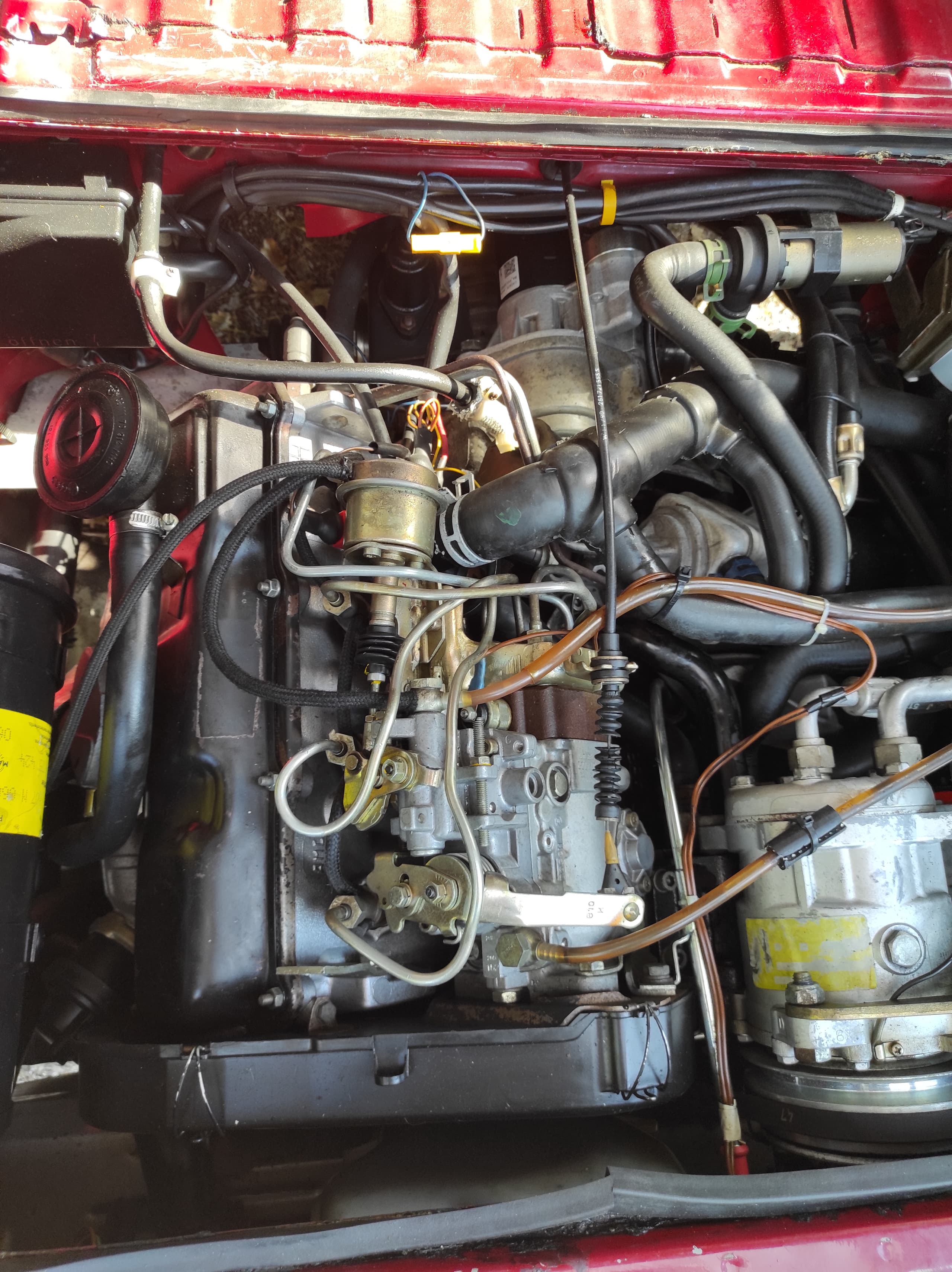 … und nach weiteren 13 Jahren hat es mich wieder erwischt, diesmal mit einem Riss in einer Einspritzleitung, so wie bei Danbulli, nur in der italienischen “Pampa”. Ein Mech, selber T3 Fahrer, meinte, die neuen After Market Leitungen seien nichts mehr wert und die Bestellung dauere sehr lange. Virtuos flickte er mir den JX provisorisch mit Mitsubishi Leitungen aus einem Schlachtfahrzeug.