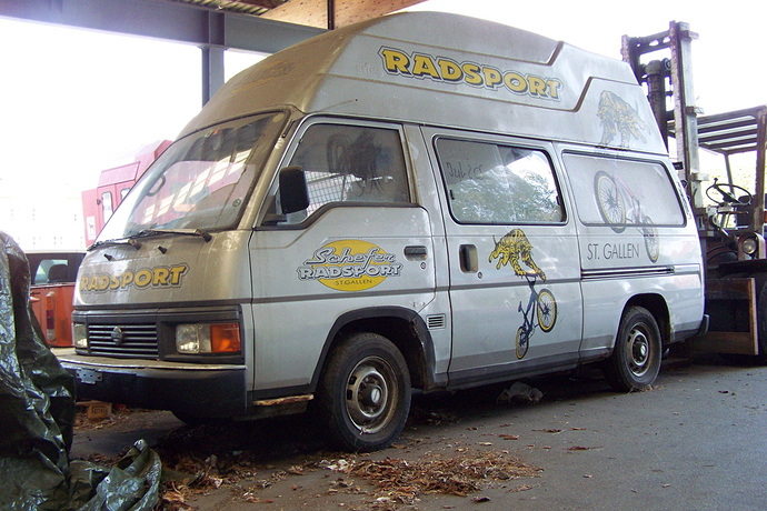 Habe einen 91er Nissan Urvan 2.4 Benziner zum Schlachten zu vergeben. Der Bus hat sehr viel Rost den Schwellern, Radkästen und Stossstangen entlang. Eine Bremsleitung leckt ansonsten ist der Bus mechanisch nicht allzu schlecht “zwääg”. Es wurden immer alle Service gemacht. Service Heft vorhanden. Der Motor läuft und startet gut. Hat 195’000 Km auf dem Buckel. Getriebe und Kupplung sind iO. Alle Armaturen funktionieren. Der Bus hat einen, ohne Werkzeug demontierbaren, Camperausbau für 4 Personen. Spülbecken und Herd sind nicht dabei. Der Veloträger wird noch demontiert. Der Bus ist 8fach bereift.