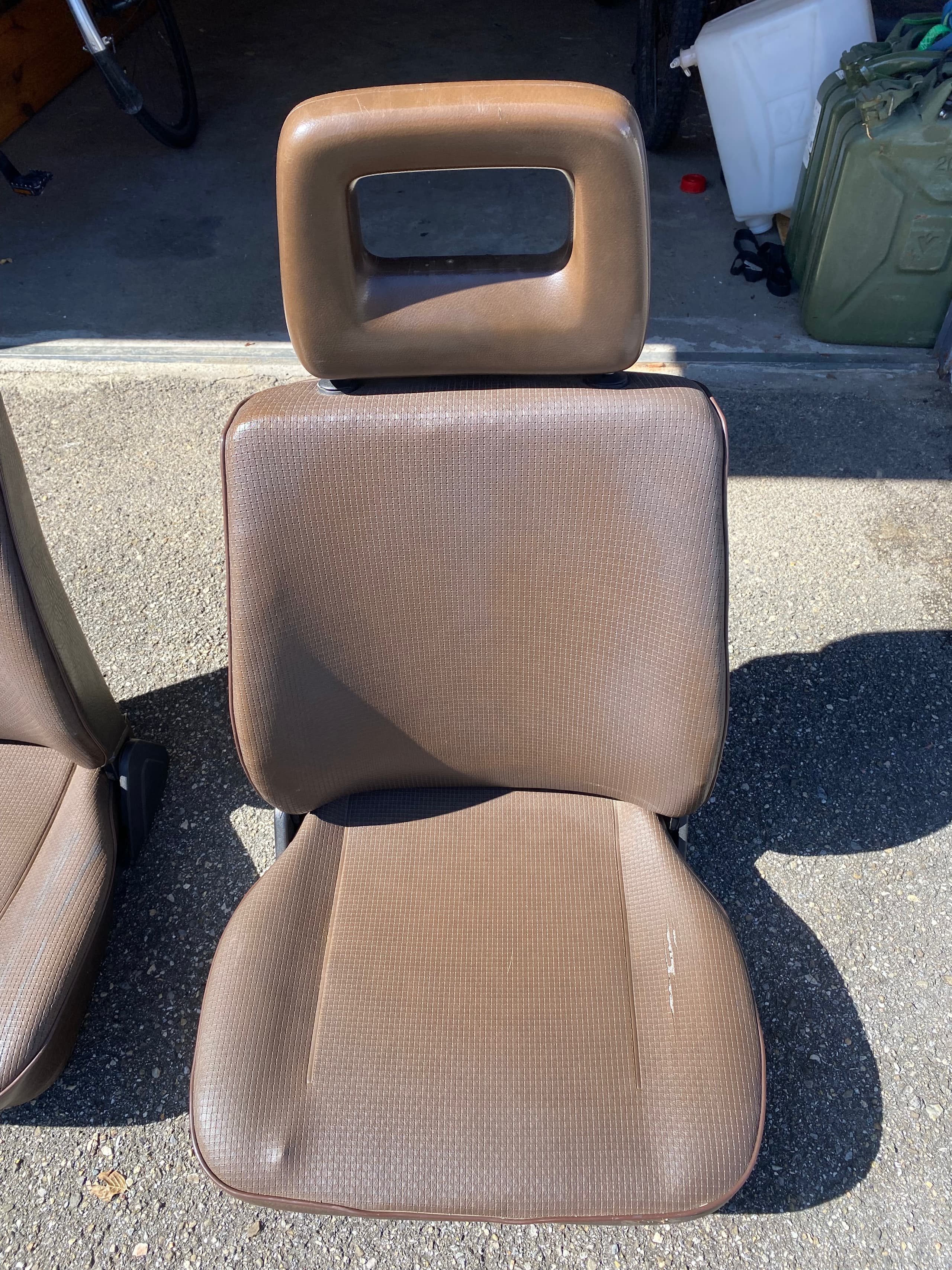 Ich habe einen Fahrer- und Beifahrersitz für den T3 abzugeben, in braunem Kunstleder. Der Beifahrersitz ist in ordentlichem Zustand, der Fahrersitz hat einen Riss und es ist wohl an der Zeit, den Schaumstoff zu wechseln. Was kann man dafür verlangen? Ist 50.- pro Sitz fair?