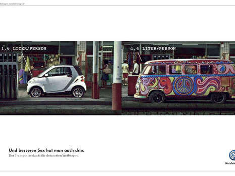Volkswagen - etwas an der Ehre gekratzt - konterte mit einer Printanzeige. Denn während im smart nur