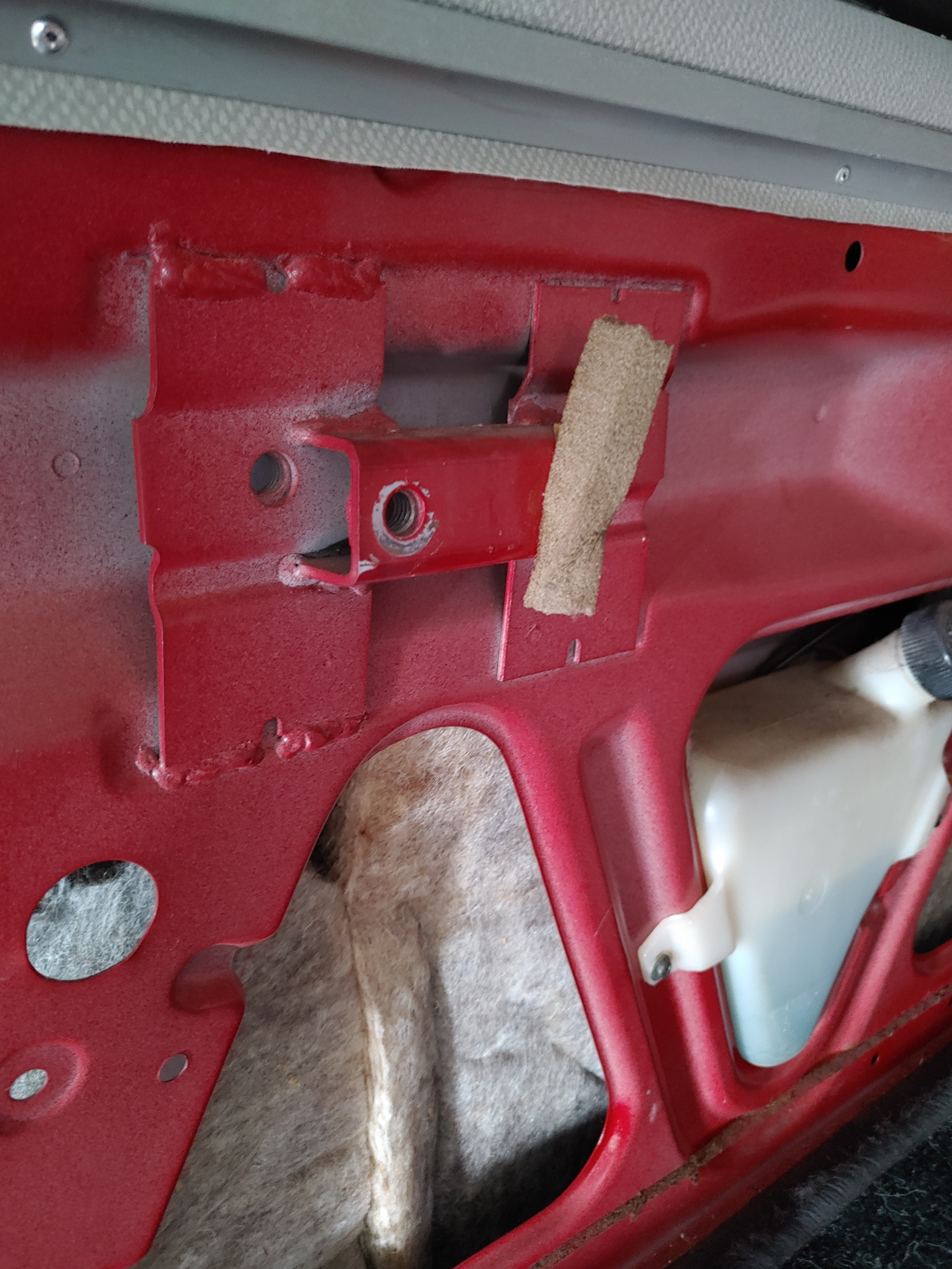 Felix: Ich brauche vermutlich die hintere Aufnahme, da ja Multivan. Die vordere wird von der Plastikverkleidung sogar verdeckt. Drum der Schaumstoffstreifenrest.