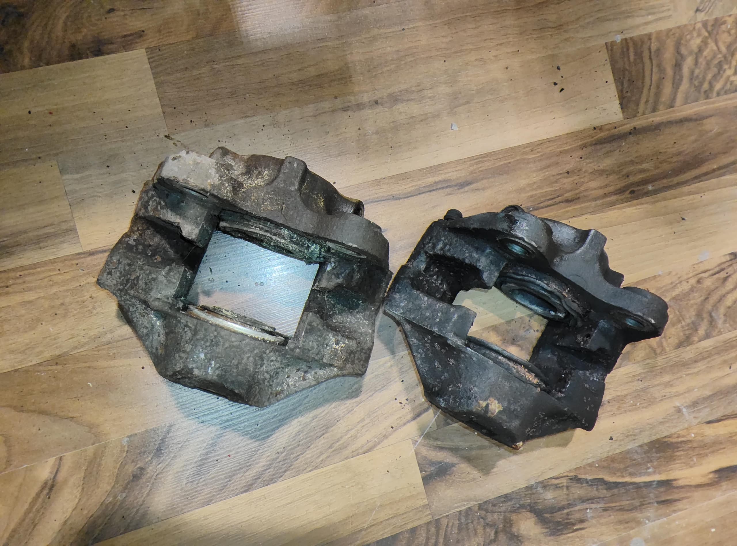 Festsattelbremsen (bis ‘86) ein Satz ATE (Bild 1+2) und ein Satz Girling (Bild 3+4), 40Fr. pro Satz