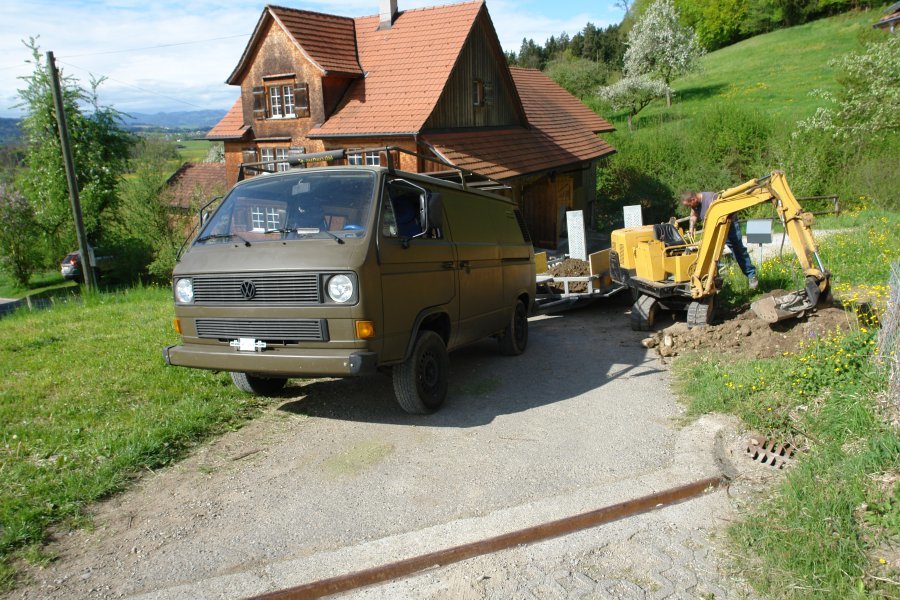 den Bagger hab ich dann auch noch mit dem Bus + Hänger zurückgebracht. Das geht ganz gut und passt grad noch von der Zuglast.