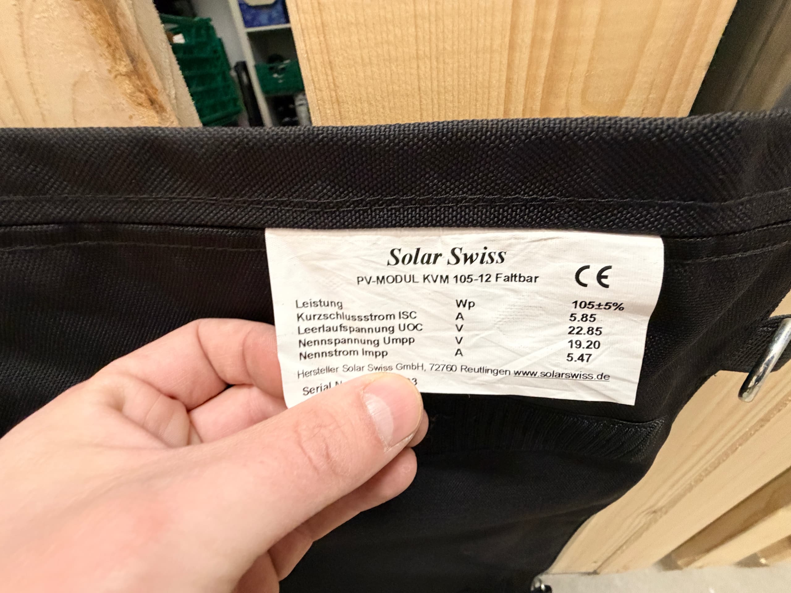 Verkaufe ein faltbares SolarSwiss Solar Panel mit 100W incl. Kabel. Es müsste dieses hier sein: Link zum Solarpanel