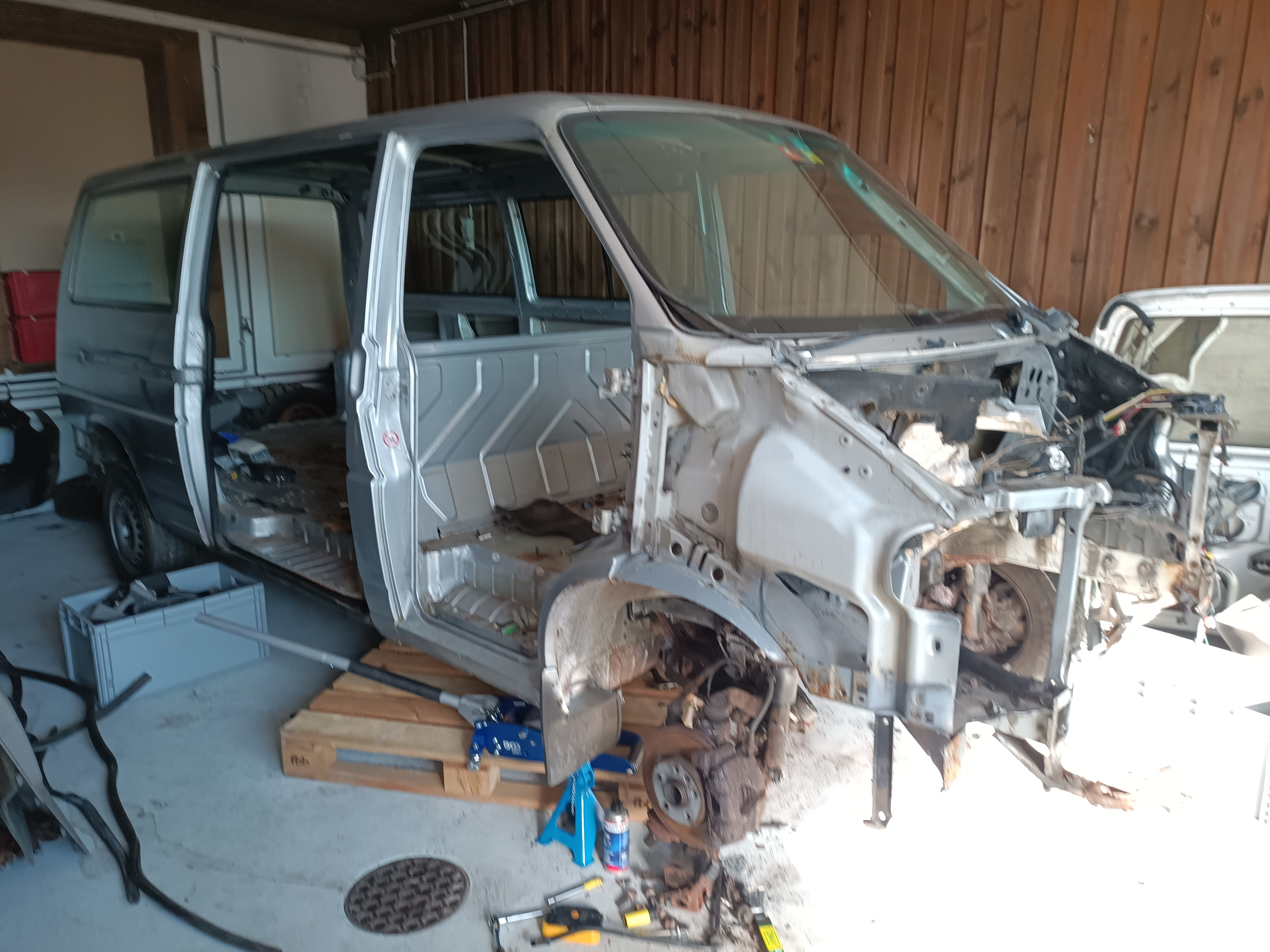 Habe eine leere und gut erhaltene VW T4 Carosserie abzugeben, z.b für für Rep. Bleche. Es war ein VW T4 Syncro aus 2001 mit Langem Radstand.