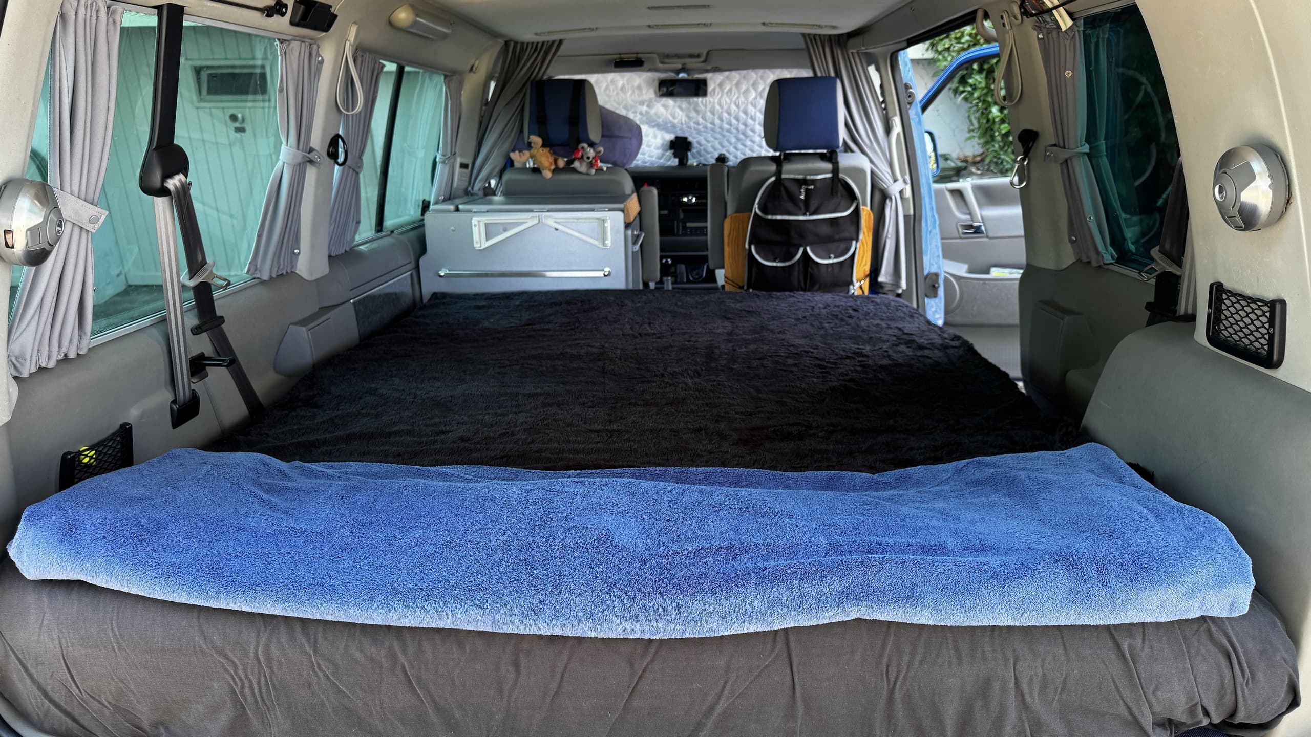 Klappsitzbank mit grossem, komfortablen Bett Länge 188cm x 140-150cm Breite, 8 cm Matratze und 3cm Kaltschaumtopper.