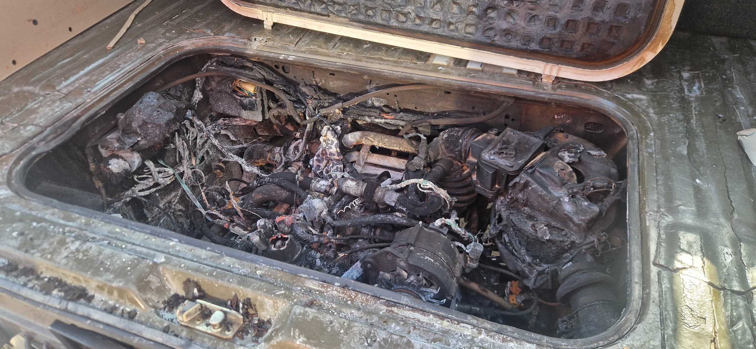 mir ist letzte Woche bei meinem T3 Syncro der Motor in Flammen aufgegangen. Nun bin ich auf der Suche nach Ersatz oder passenden Teilen. Glücklicherweise habe ich den Brand früh genug bemerkt und konnte Schlimmeres verhindern. Die Karosserie hat außen zum Glück fast nichts abbekommen, aber im Motorraum ist leider so gut wie alles hinüber: Kabelbaum, Schläuche, Abdeckungen, Clips usw.
