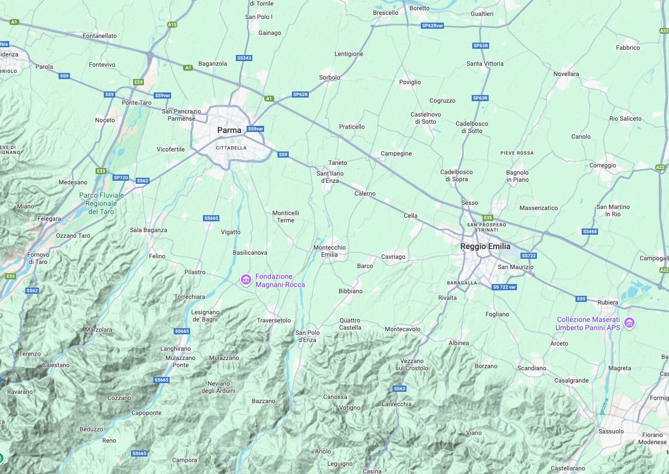 Mein best guess war bislang irgendwo auf der Strecke zwischen Parma und Reggio Emilia. Emilia könnte auch im französischen ein geläufiger Name sein; Emelie im englischen und französischen? Was mich irritiert ist die Topografie. Auf deinem ersten Bild bist du auf einem Hügel. Die Strecke Parma - RE ist aber völlig flach. Verläuft die Route der Mille Miglia da nicht gerade, sondern südlich als Kurve durch die Hügel? Würde jedenfalls zu “Die Strasse, an der der gesuchte Ort liegt, ist nicht die schnellste Verbindung zwischen zwei grösseren Städten” passen.